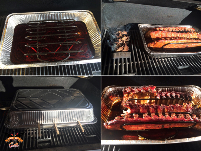 Put in some pre soaked wood chips and smoke at medium heat for 45 minutes. Add a little more liquid (water) and seal with second pan and secure with a few clothes pins. An hour and 15 minutes later you got perfect ribs!!! Easy, simple and Rockin... Try it yourself and let me know how they come out!!!